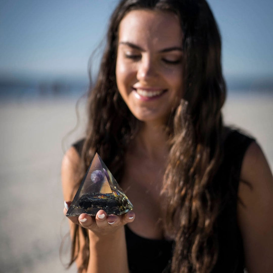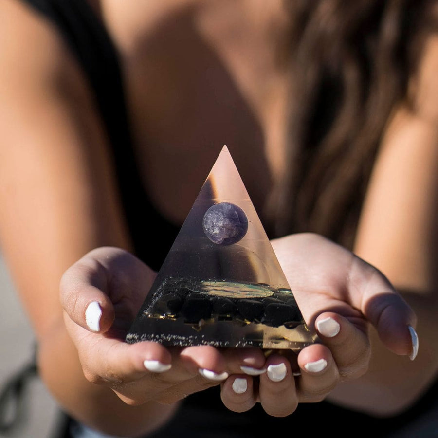 PRODUCT TYPE: Amethyst Black Tourmaline Orgonite Pyramid