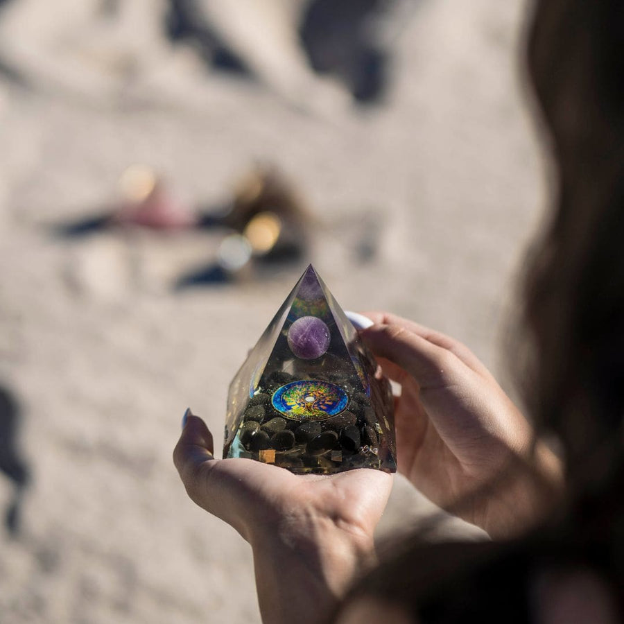🌳 Tree of Life Orgonite Pyramid Enhance your decor with the unique and striking Tree of Life Orgonite Pyramid. Expertly handcrafted with a blend of resin, metal, and natural elements, this geometric piece features a detailed Tree of Life emblem...